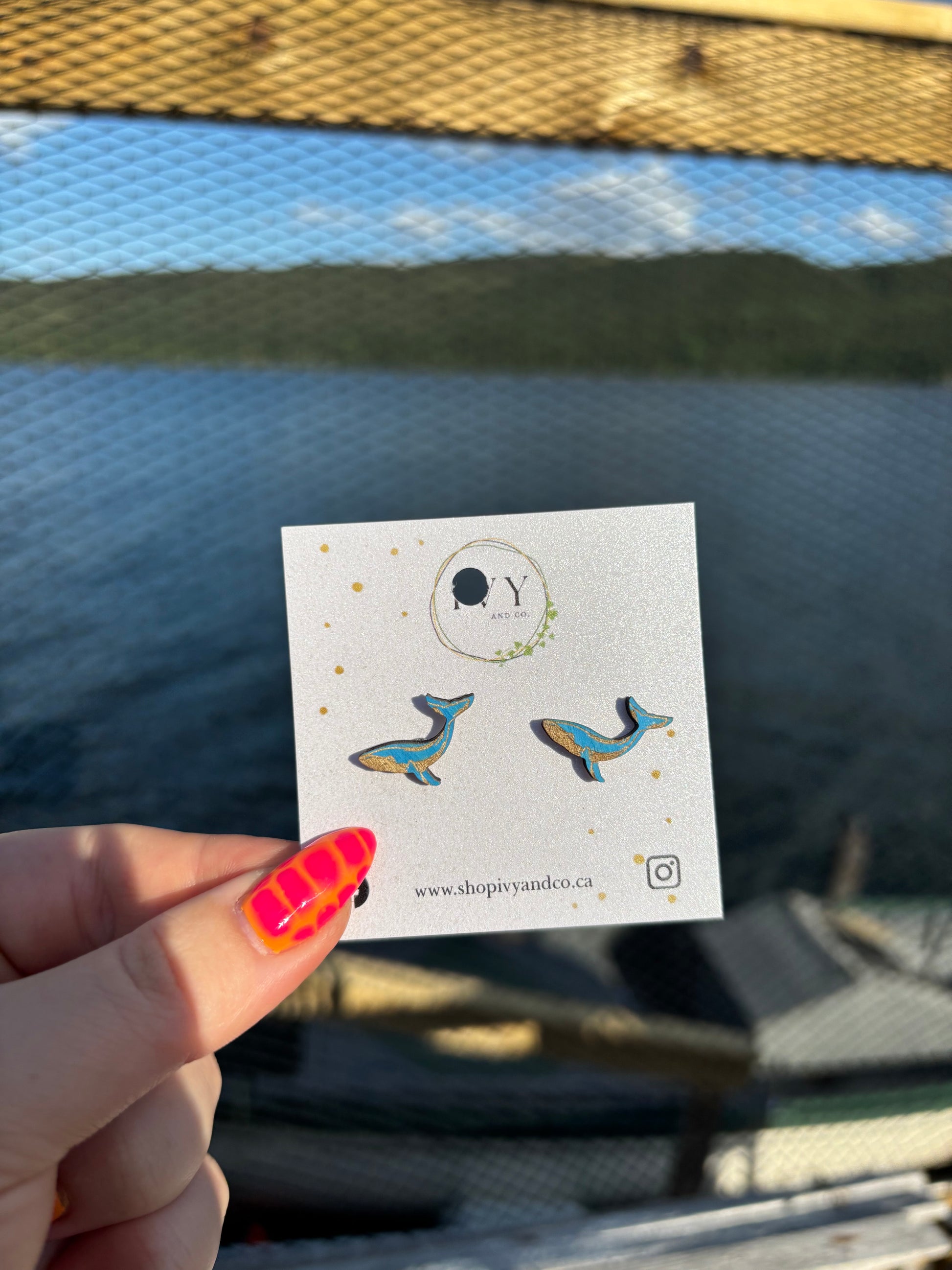 Wooden Humpback Whale Earrings